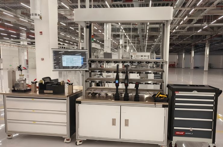 High-precision automation and testing solutions designed for new energy vehicle systems, including e-drive, sensors, thermal management, and shock absorber assemblies.
